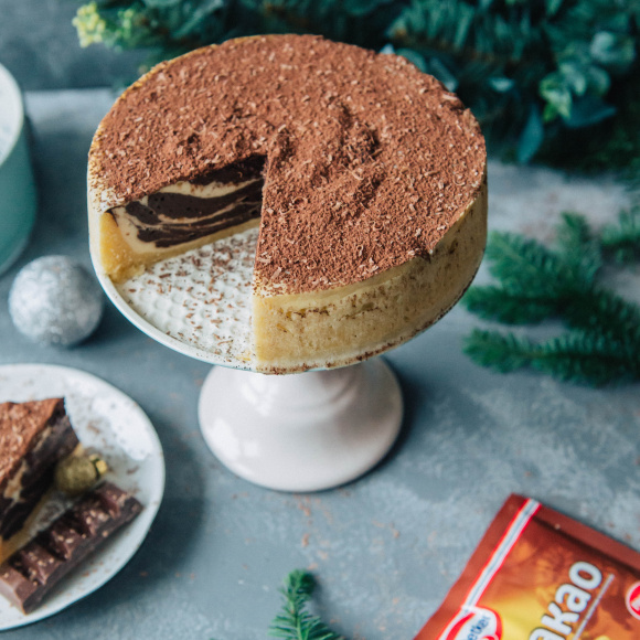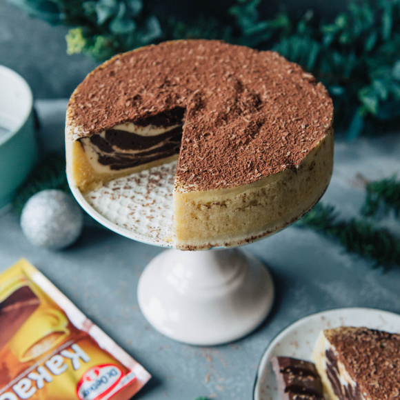 По желанию готовый пирог «Зебра» украшаем какао или кондитерской посыпкой и наслаждаемся насыщенным вкусом и необычным видом этого прекрасного десерта! Приятного аппетита!