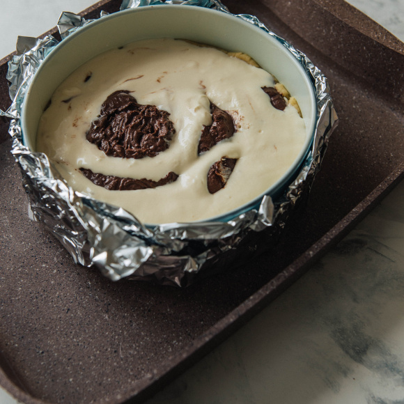 Низ формы обернуть двумя слоями кулинарной фольги.