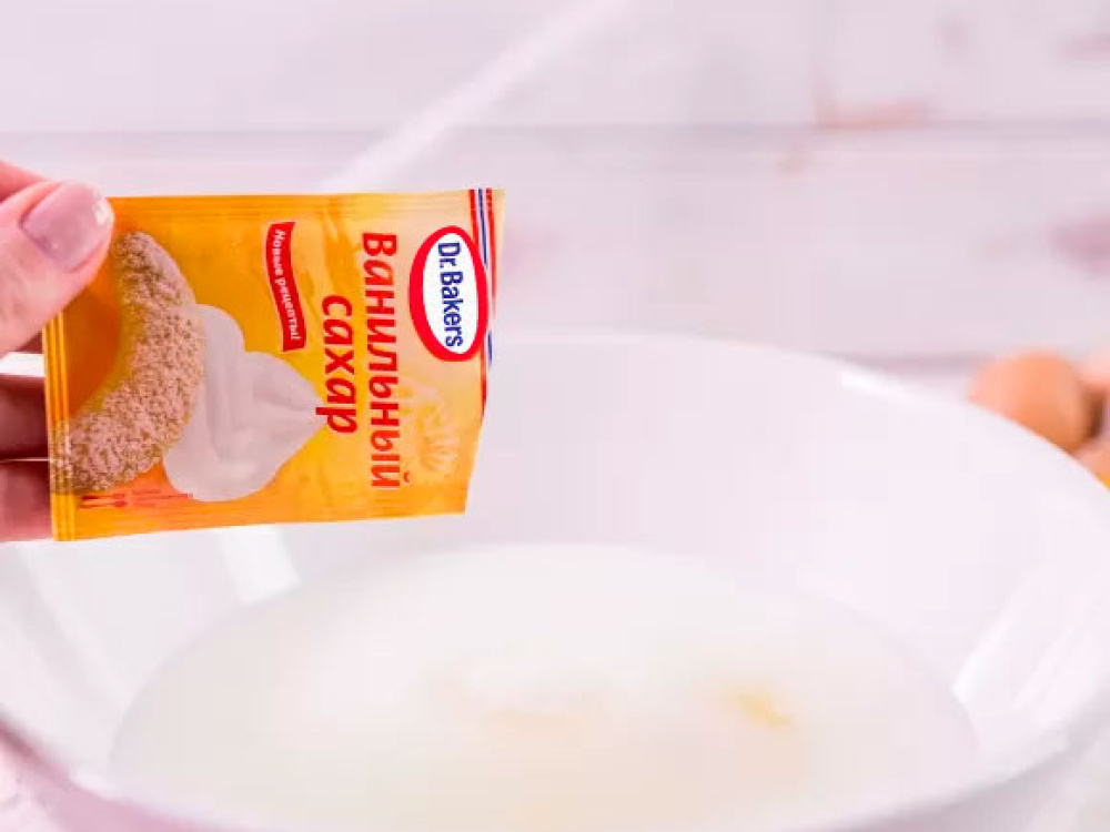 Сюда же добавим 8 г ванильного сахара и около 30 г сахара.
