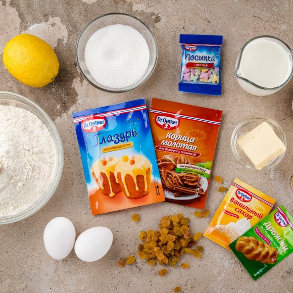 Для приготовления пасхального пирога нам понадобятся следующие ингредиенты.