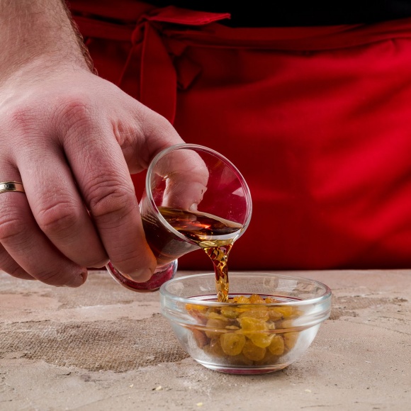 Промойте изюм и залейте его на 30 минут коньяком.