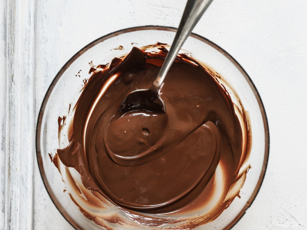 Для декора шоколад растапливаем на водяной бане. Соломку ломаем руками.