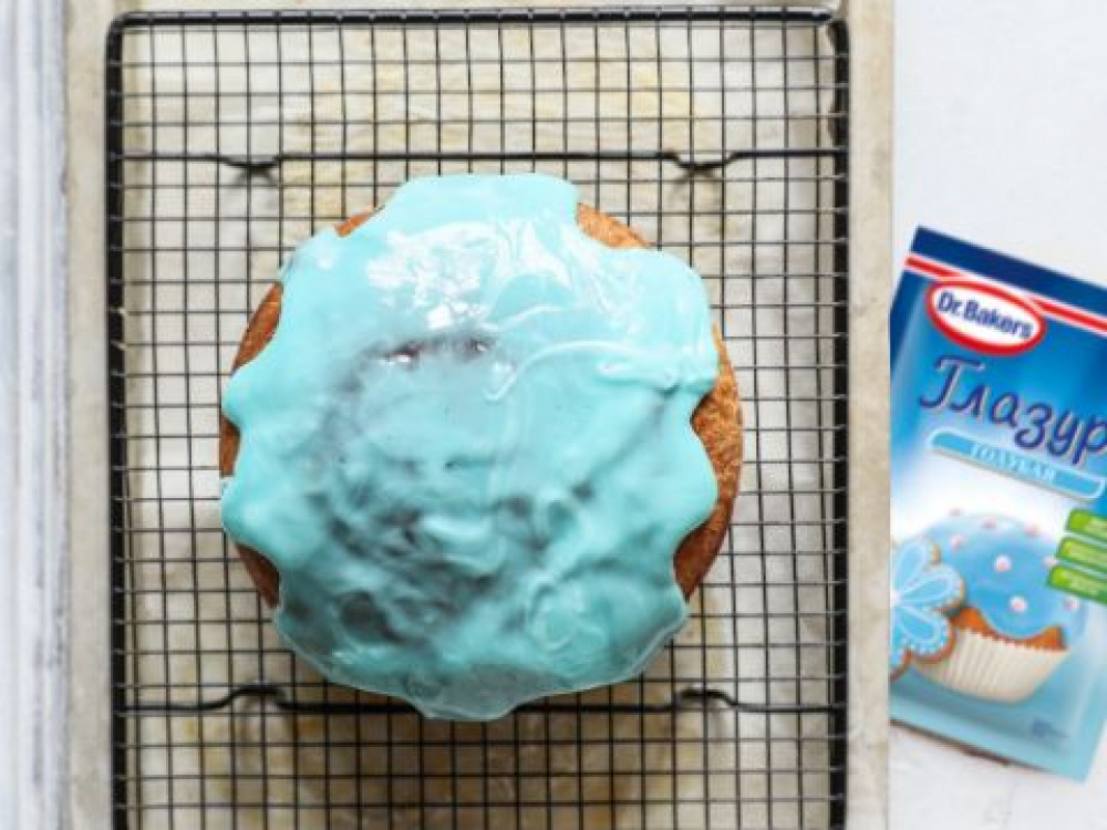 Покрываем кулич глазурью, следуя инструкции на упаковке и украшаем шоколадным гнездом.
