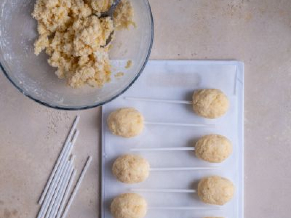 Из получившейся массы лепим плотные шарики и насаживаем их на шпажку. Убираем в морозилку минимум на час.