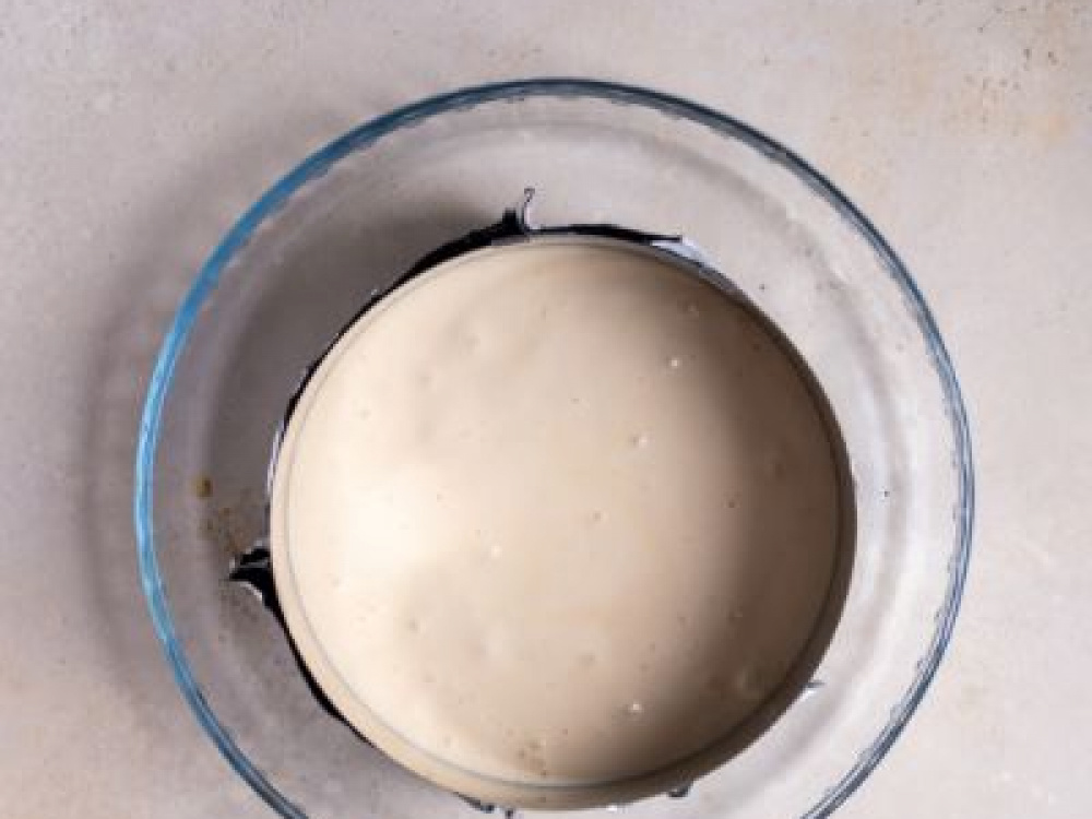 Перекладываем тесто в форму для выпечки. Подойдёт любая форма.
