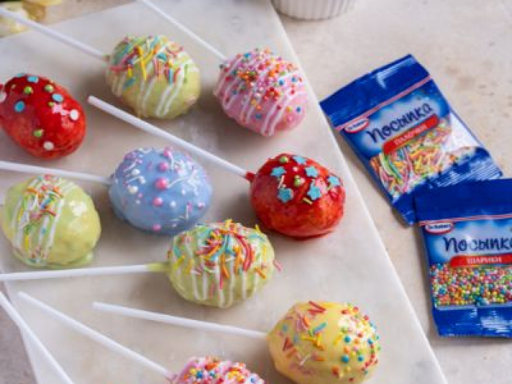 Украшаем каждое пирожное посыпкой и оставляем до полного застывания глазури.