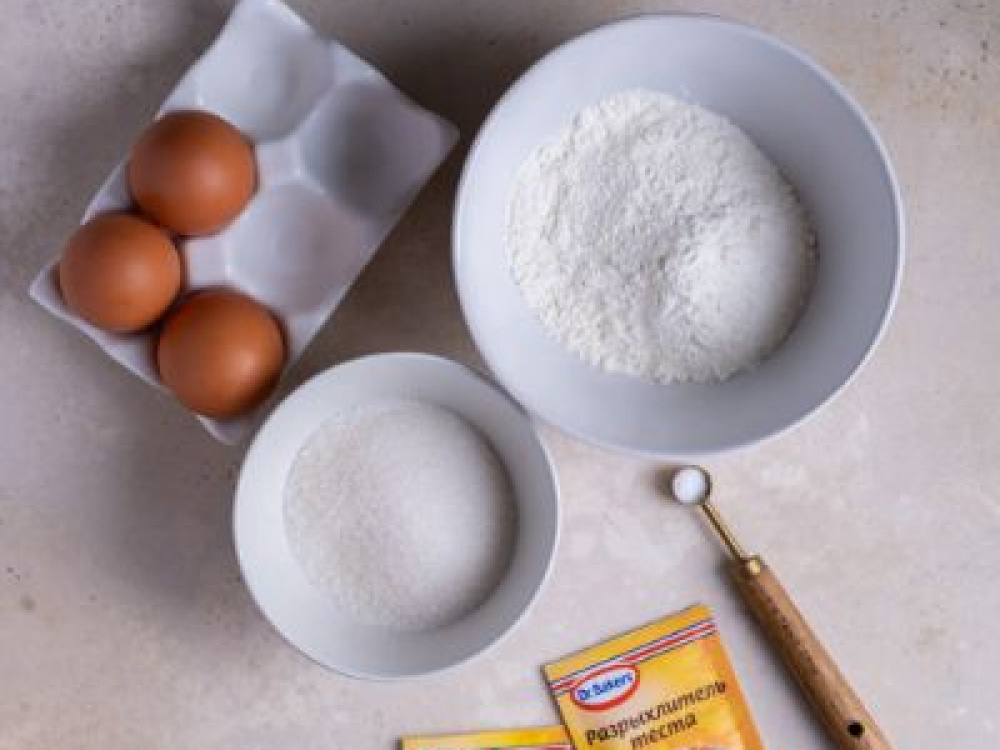 Выпекаем бисквит в духовке, разогретой до 170°С, в течение 30–35 минут. Духовку первые 25 минут не открываем, иначе бисквит осядет.