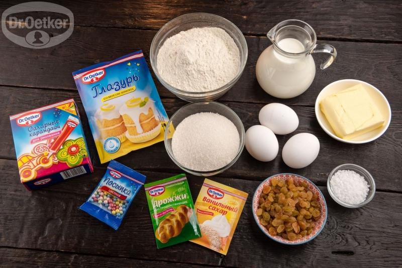 Для приготовления пасхального кулича нам понадобятся следующие ингредиенты.