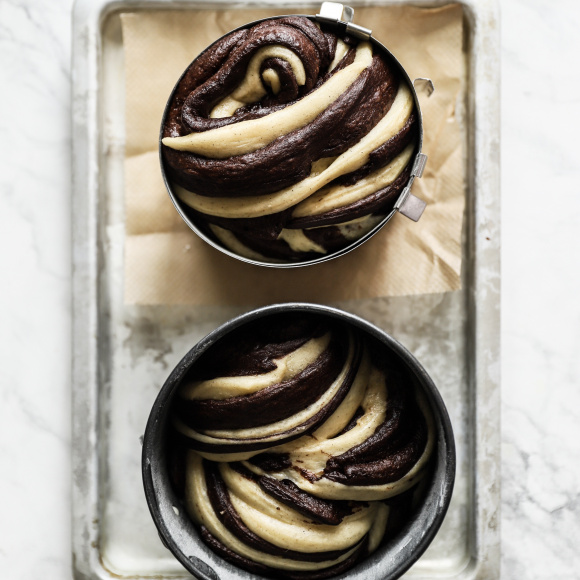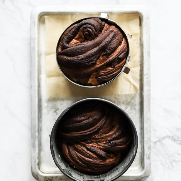 Далее проделываем пункты 2, 3 и 4 и с шоколадным тестом. Убираем оба теста в холодильник на 8 часов (лучше на ночь).