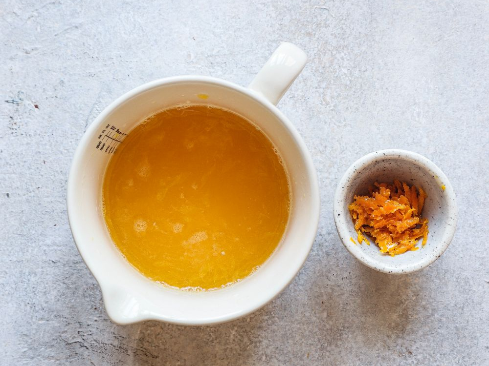 Добавляем апельсиновый сок и ещё раз хорошо перемешиваем.