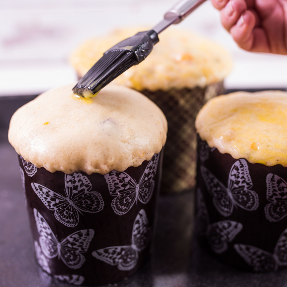Разогреваем духовку до 180-190 градусов. Размещаем формы на решётке на уровне средней полки духовки и выпекаем в течение 30-35 минут до появления румяной корочки. Готовые кексы Панеттоне аккуратно вынимаем из форм. Даём им остыть на решётке и подаём к столу, при желании можно украсить верх мелкой сахарной пудрой или глазурью. Приятного аппетита!