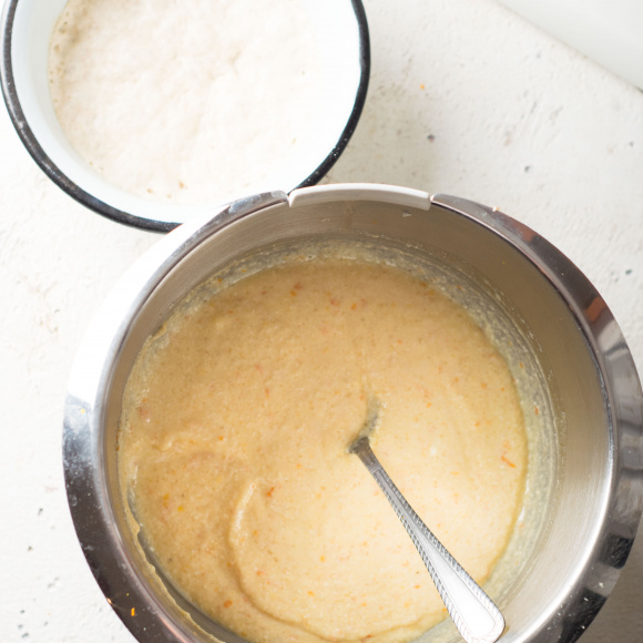 Для разнообразия добавили в него немного цедры апельсина. Получается он рыхлый и чуть влажный, тяжелый из-за творожной части.