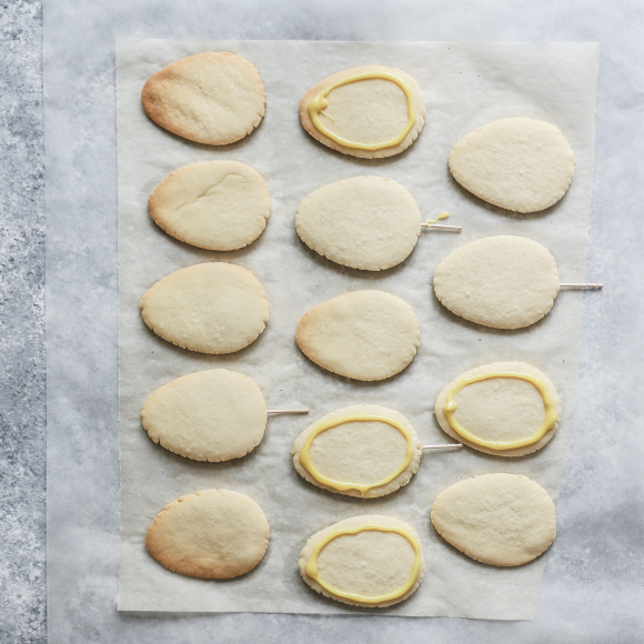 Еще в горячее печенье вставляем зубочистки (чтобы получился топпер), печенье остужаем. ⑲