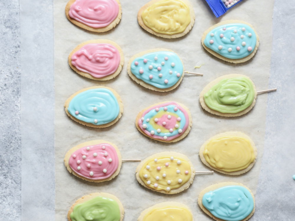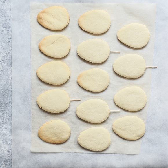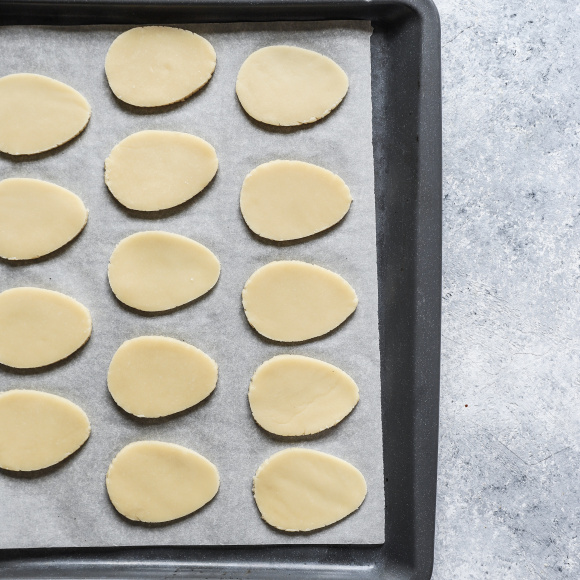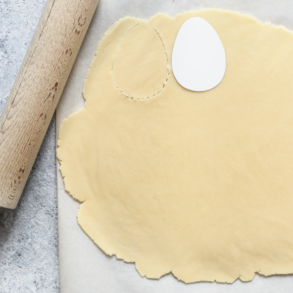 В помощью трафарета или вырубки вырезаем печеньки в форме яиц. ⑰