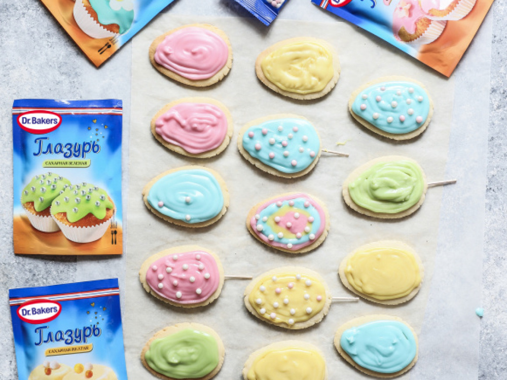 Творожный кулич с клюквой и пасхальным печеньем станет отличный вариантом, если вы готовите с детьми. Они легко раскрасят печеньки, пока вы занимаетесь куличами. Кстати печенье может быть любой формы, которая придет вам в голову.