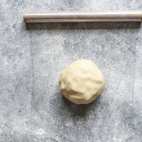 Заворачиваем тесто в плёнку и убираем в холодильник на 30-40 минут.