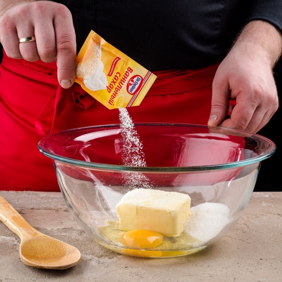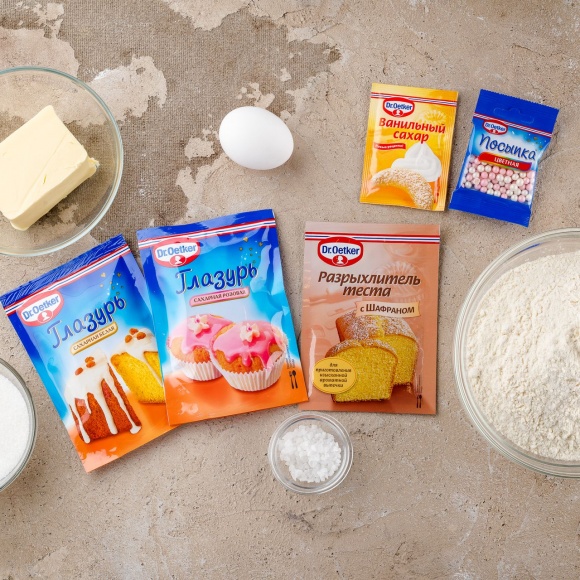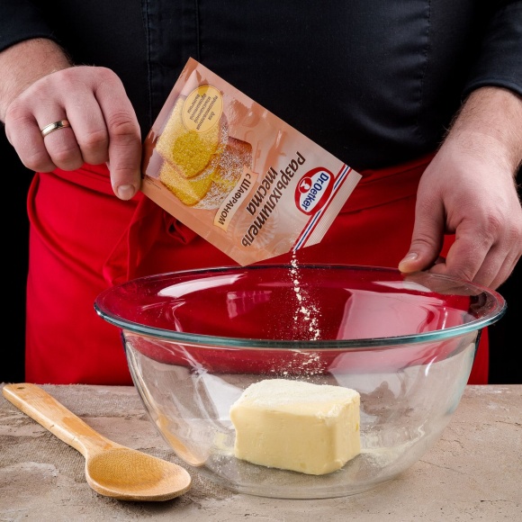 Мягкое сливочное масло смешайте с разрыхлителем с шафраном Dr. Bakers.