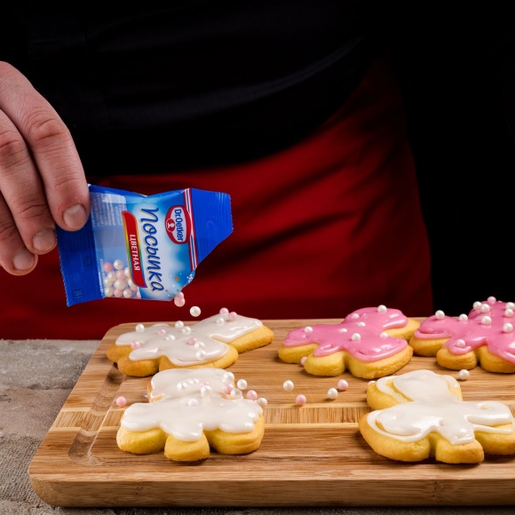 Посыпьте печенье цветной посыпкой «Жемчужины».
