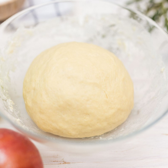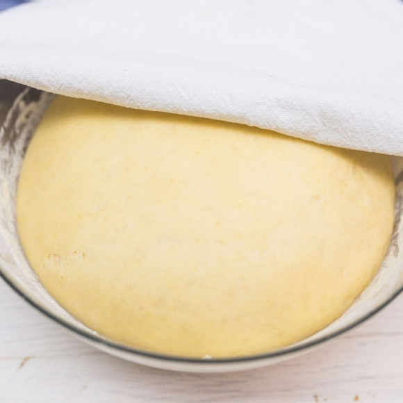 Спустя час ещё раз обминаем тесто и возвращаем его в тёплое место для повторного подъема.
