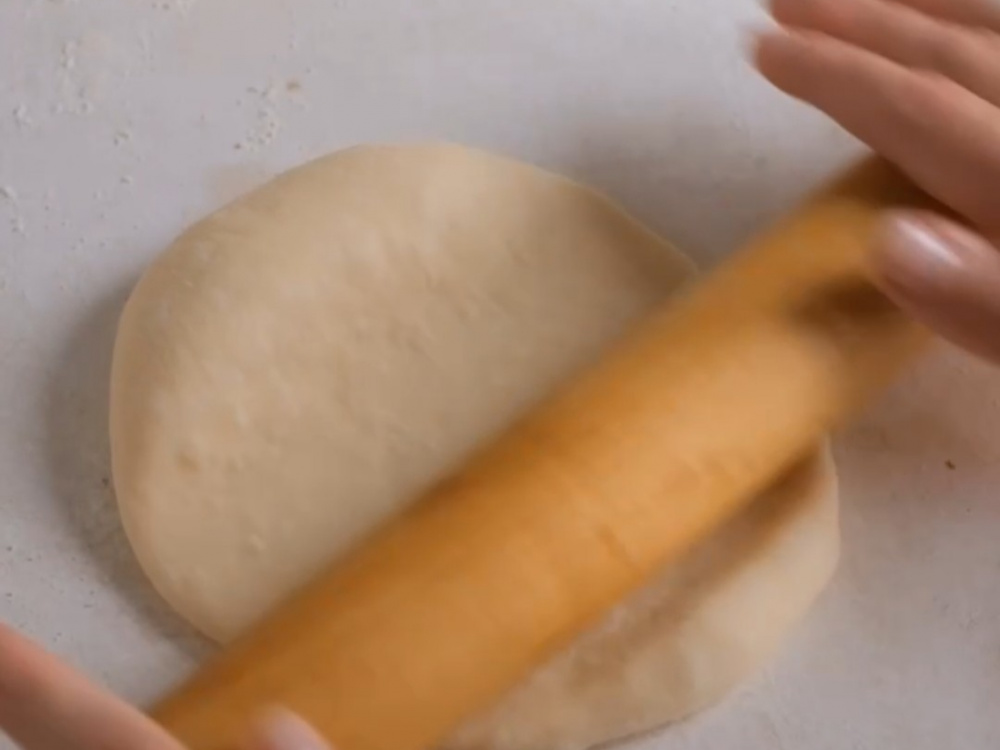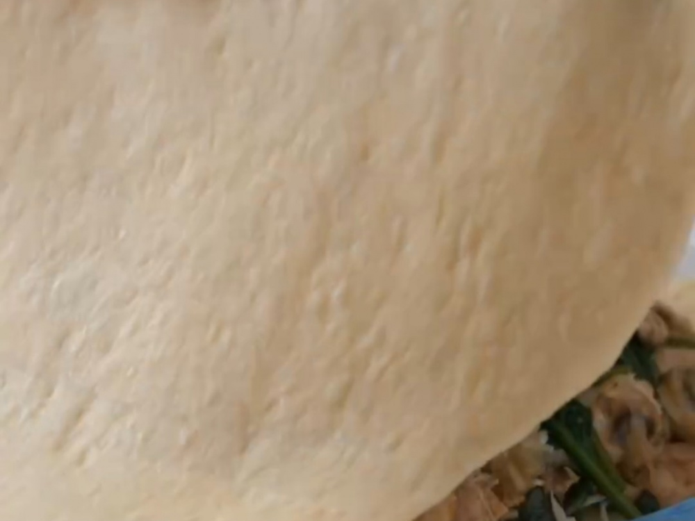 Раскатываем большую часть теста в форме круга, накрываем им нашу начинку и скрепляем края теста.