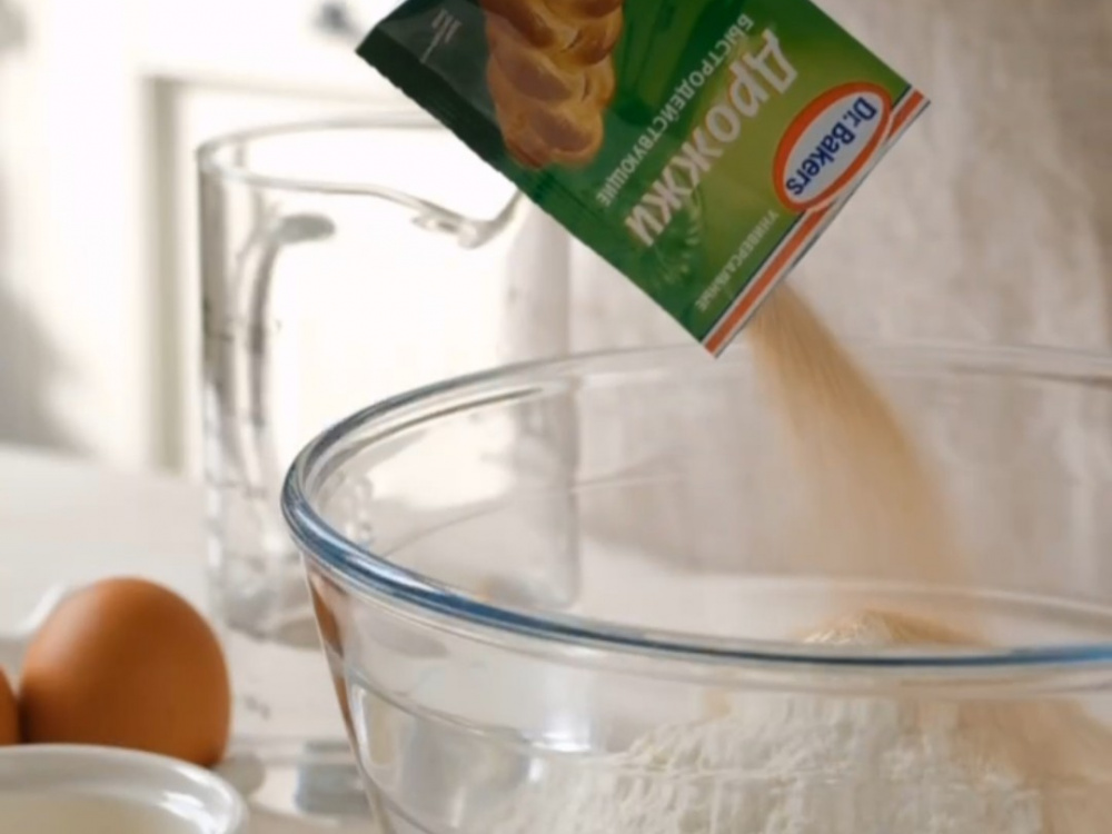 Смешиваем муку (350 г) с дрожжами (4 г) и солью (1 ч.л.).