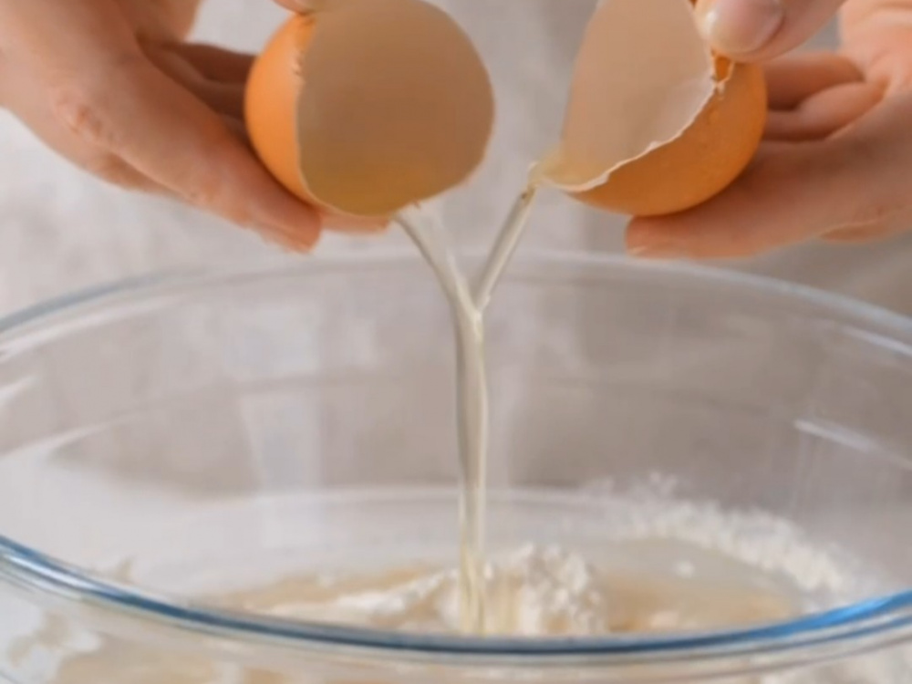 Вливаем тёплую воду (140 мл), растительное масло (40 мл), добавляем яйцо (1 шт) комнатной температуры. Перемешиваем.