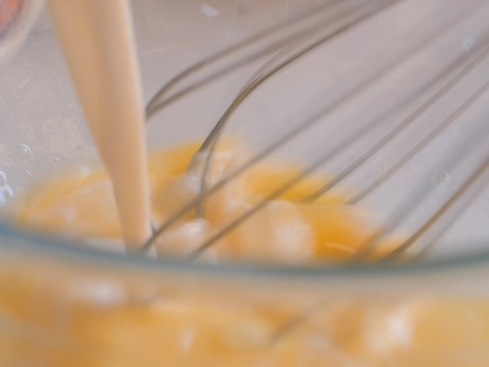 Яйца (2 шт.) взбиваем с молоком (150 мл) в глубокой миске.