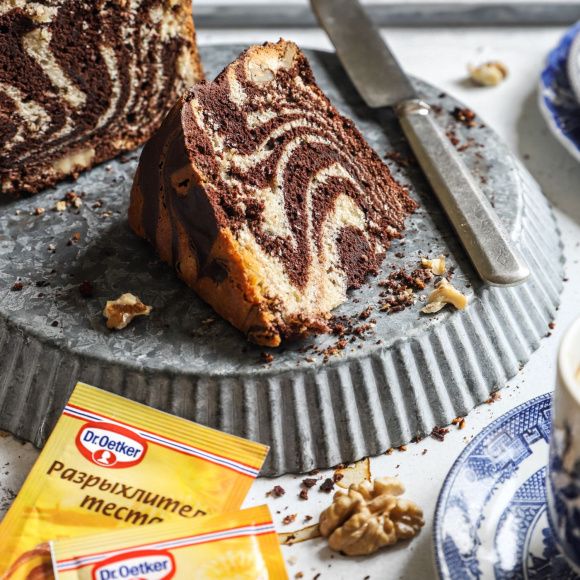 Достаем нашу зебру из духовки, остужаем минут 15. Разрезаем на небольшие кусочки. Внутри пирог имеет причудливый полосатый узор, который вы ему придали. Приятного чаепития!