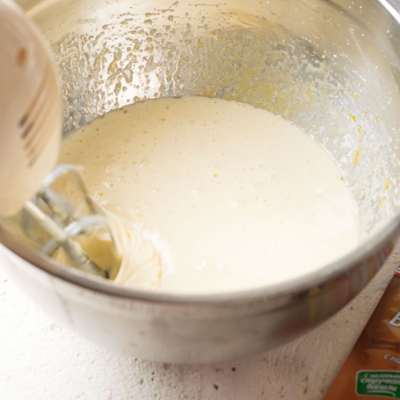 Миксером или блендером взбиваем в течении 7-10 минут, пока не образуется пышная, белая, густая масса.