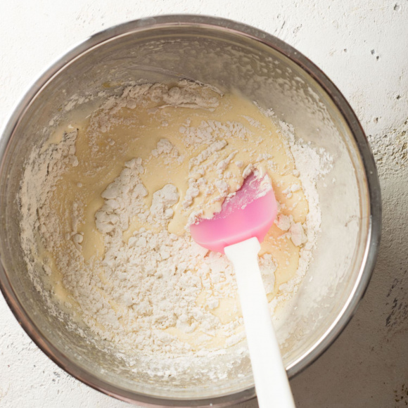 Просеиваем муку через сито. Для загустения постепенно добавляем муку непрерывно помешивая или лопаткой снизу вверх. До полного растворения мучных комочков.