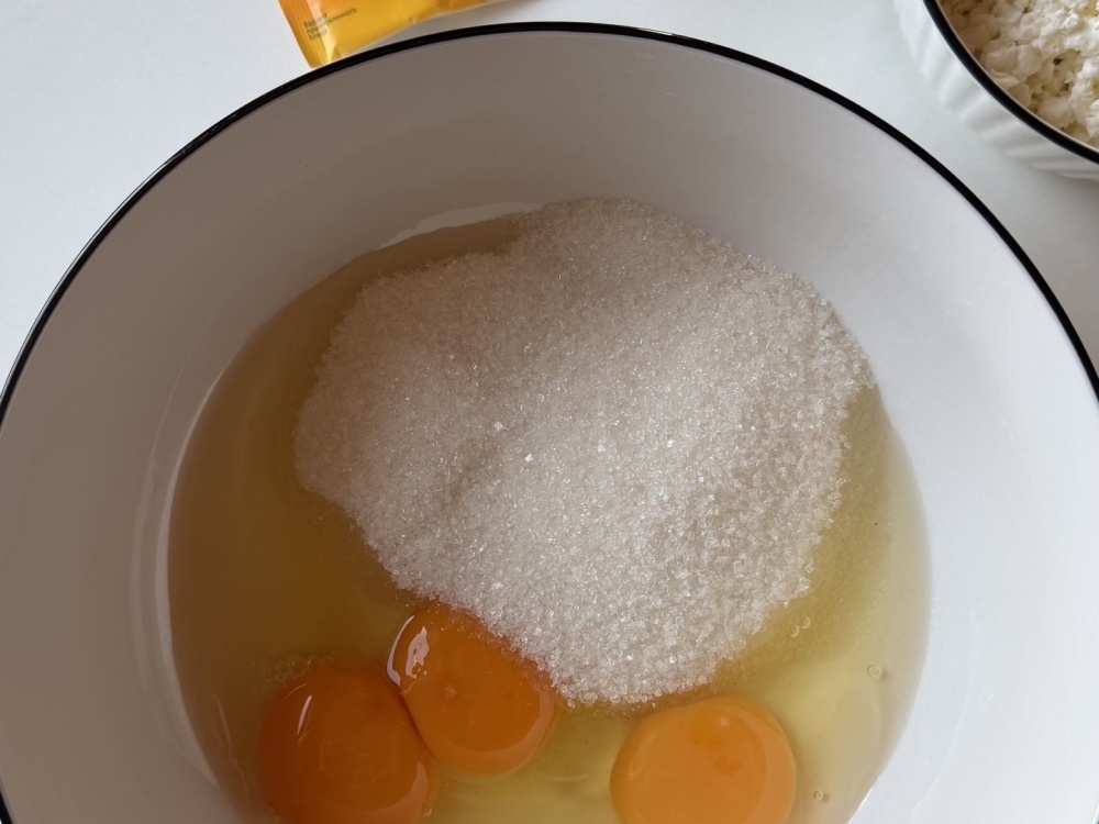 Яйца хорошо взбить с сахаром.