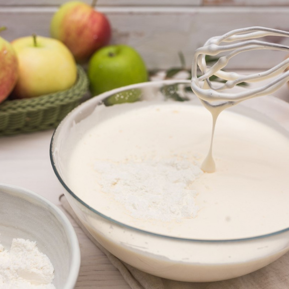 Перед приготовлением теста для пирога обязательно просейте муку с разрыхлителем. Этот шаг крайне важен для того чтобы тесто получилось легким и воздушным, так как просеивание обогащает муку кислородом и способствует её лучшему подъему.