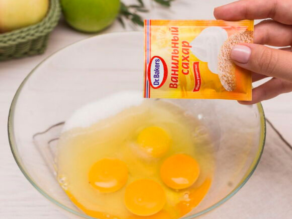 Для начала подготовьте все необходимые ингредиенты, а после возьмите четыре мелких яблока, желательно кислых сортов, нарежьте дольками и поместите в миску. Добавьте две столовые ложки сахара и щепотку корицы для аромата. Эти ингредиенты образуют начинку для теста шарлотки.