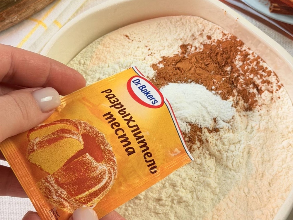 Всыпаем муку (заранее смешайте ее с разрыхлителем, солью и корицей).