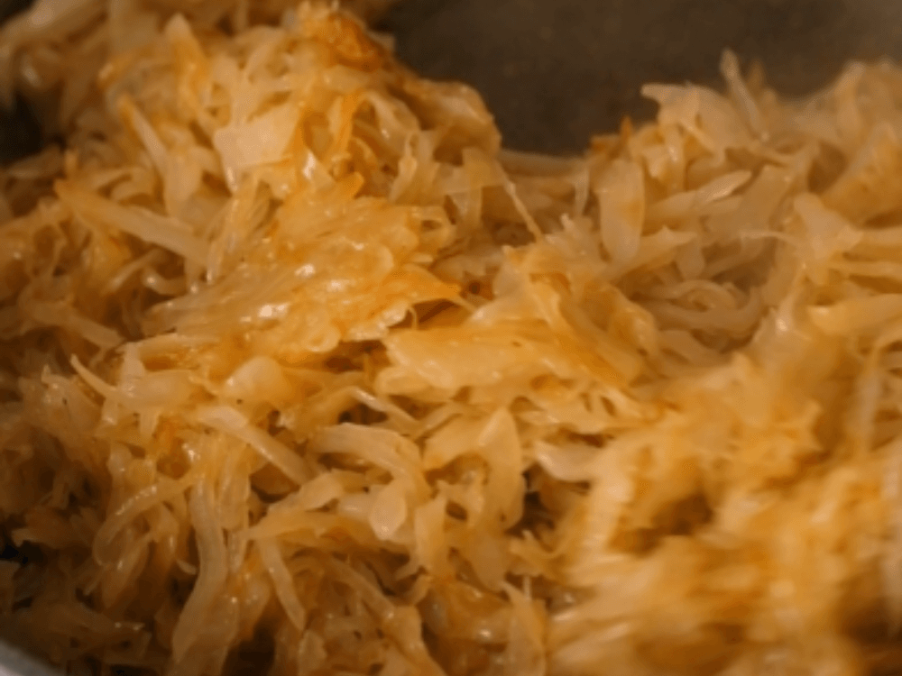 Для начинки яйца (4 шт.) отвариваем вкрутую и остужаем в холодной воде. Капусту шинкуем как можно мельче. Сливочное (30 г) и растительное масло (30 мл) прогреваем на сковороде. Выкладываем капусту (600-700 г) и поджариваем её до золотистого цвета с нескольких сторон. Солим, накрываем крышкой и тушим 3-5 минут до готовности. Яйца рубим и смешиваем с капустой.