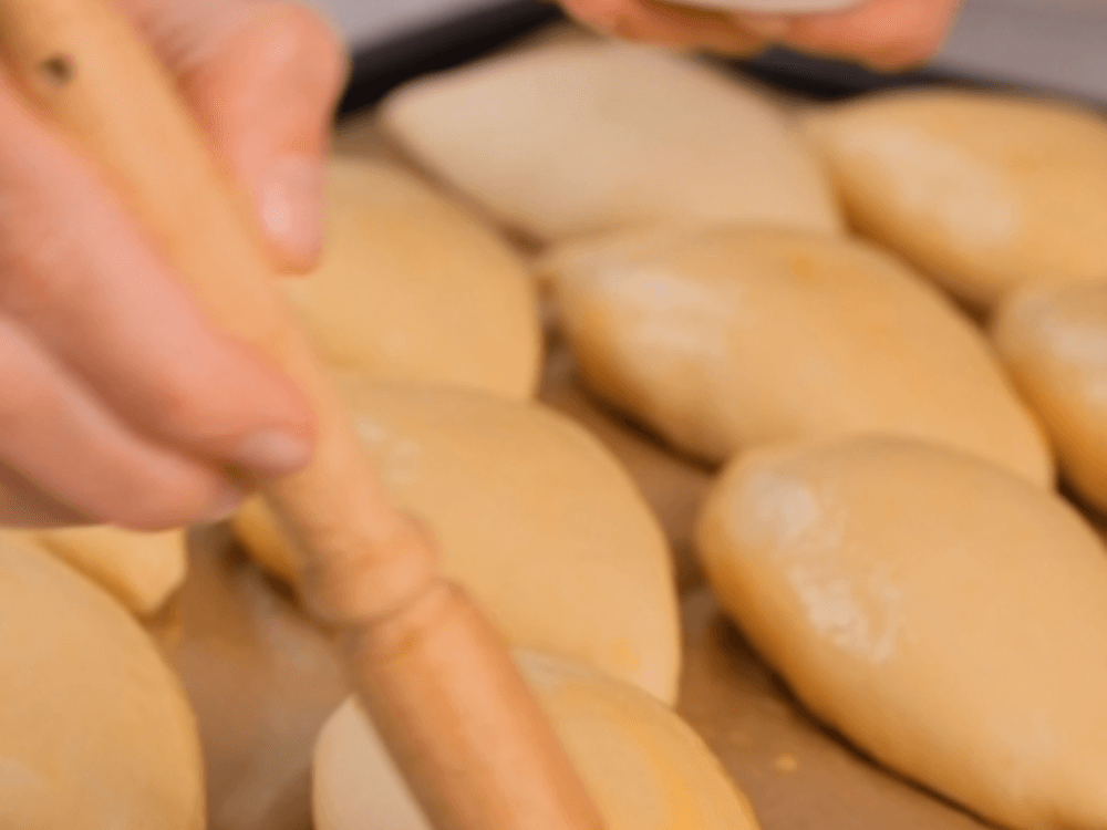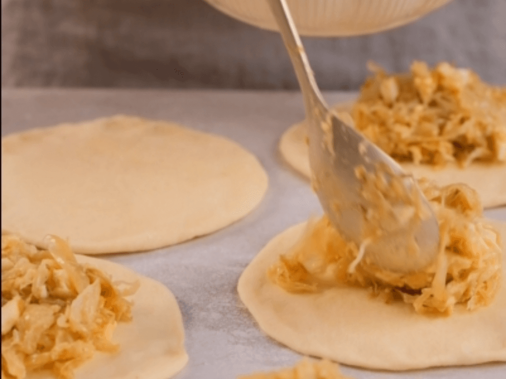Выкладываем в центр каждой лепёшки начинку и скрепляем края. Переворачиваем пирожки швом вниз и перекладываем на противень на расстоянии друг от друга минимум 3 см. Накрываем пирожки полотенцем и даём подойти ещё 20-30 минут.