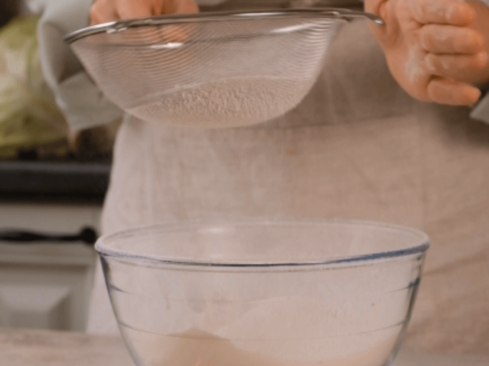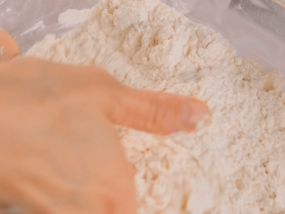 Муку (500 г) смешиваем с дрожжами (7 г), сахаром (25 г) и солью (1 ч. л.).