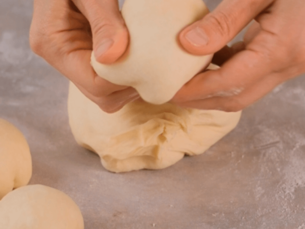Подошедшее тесто обминаем, делим на 10-12 равных частей и округляем каждую. Раскатываем кусочки теста в круглый пласт диаметром около 10 см. Пока формуем одну часть, остальные накрываем полотенцем, чтобы не подсыхали.