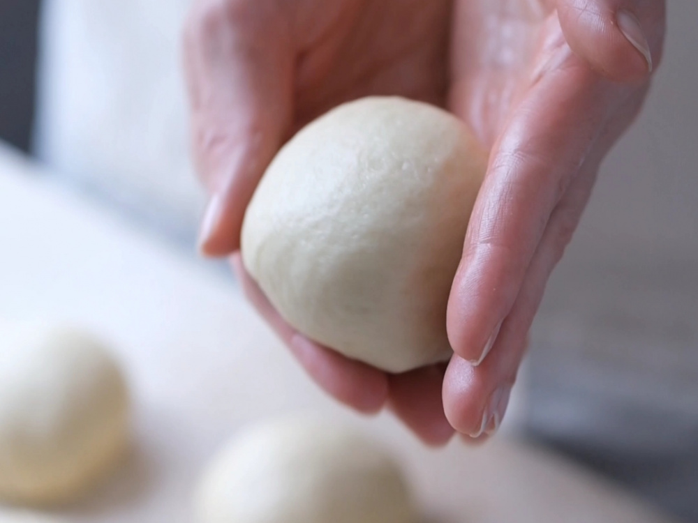 Тесто делим на 12 равных частей в виде шариков.