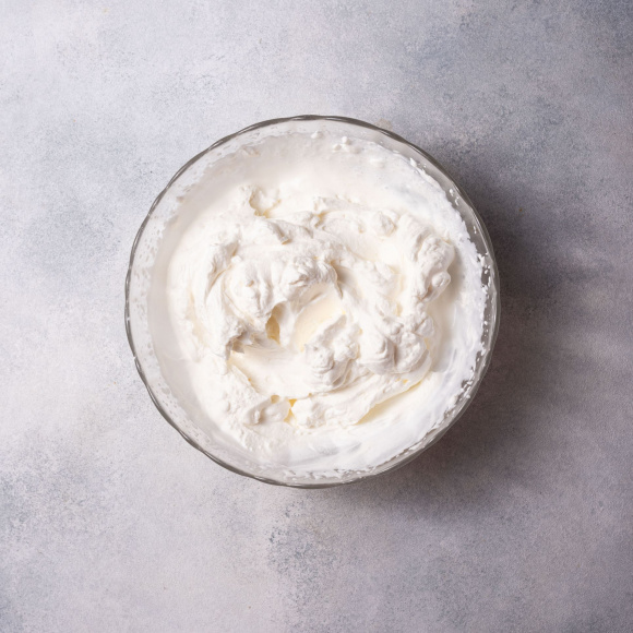 Готовим крем: холодные сливки взбиваем на высокой скорости до образования устойчивых пиков.