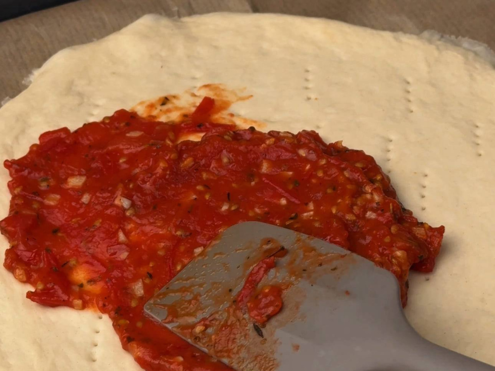 Вегетарианский рецепт пиццы зависит от теста.Dr. Bakers рекомендует сахар добавлять в теплую воду и только после этого - растворить дрожжи. Спустя 1/3 часа, всыпаем стакан муки, соль и оливковое масло. 2 стакана муки добавляем постепенно, хорошо вымешиваем консистенцию и скатываем в шар. После этого смазываем тесто маслом и накрыв, оставляем его на 1,5 часа при комнатной температуре.