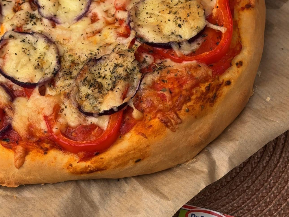 Вегетарианская пицца полностью раскрывает свои вкусовые качества, когда подается еще теплой.