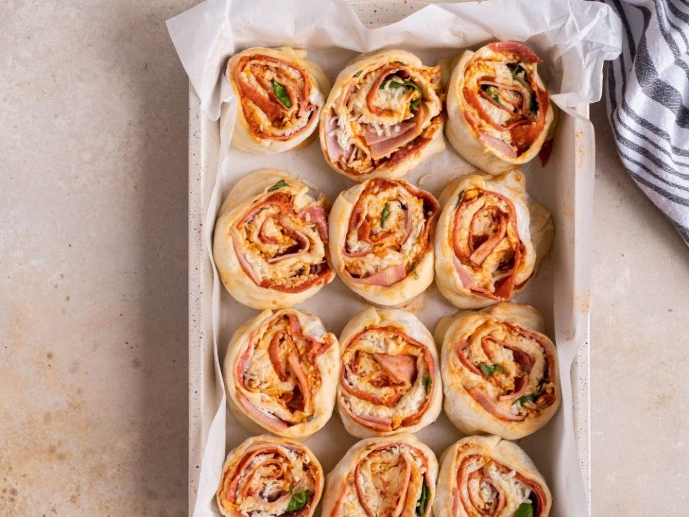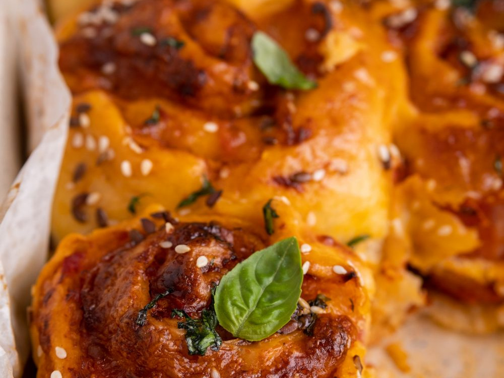 Перекладываем роллы в форму для выпечки, накрываем полотенцем и даём подняться в тёплом месте ещё 25-30 минут.