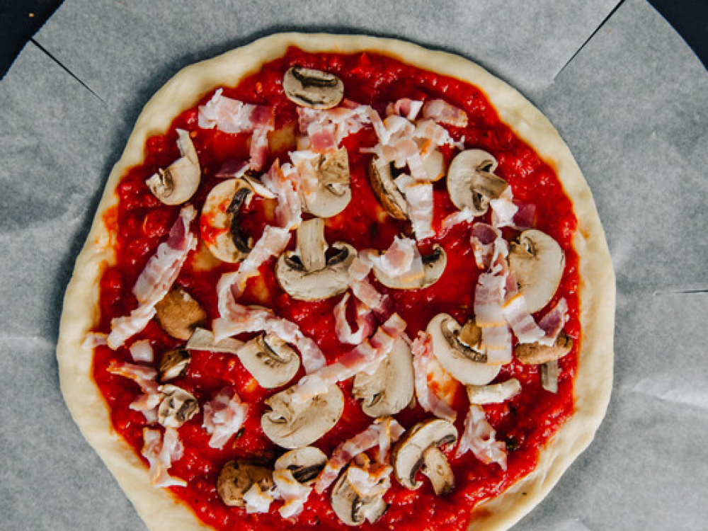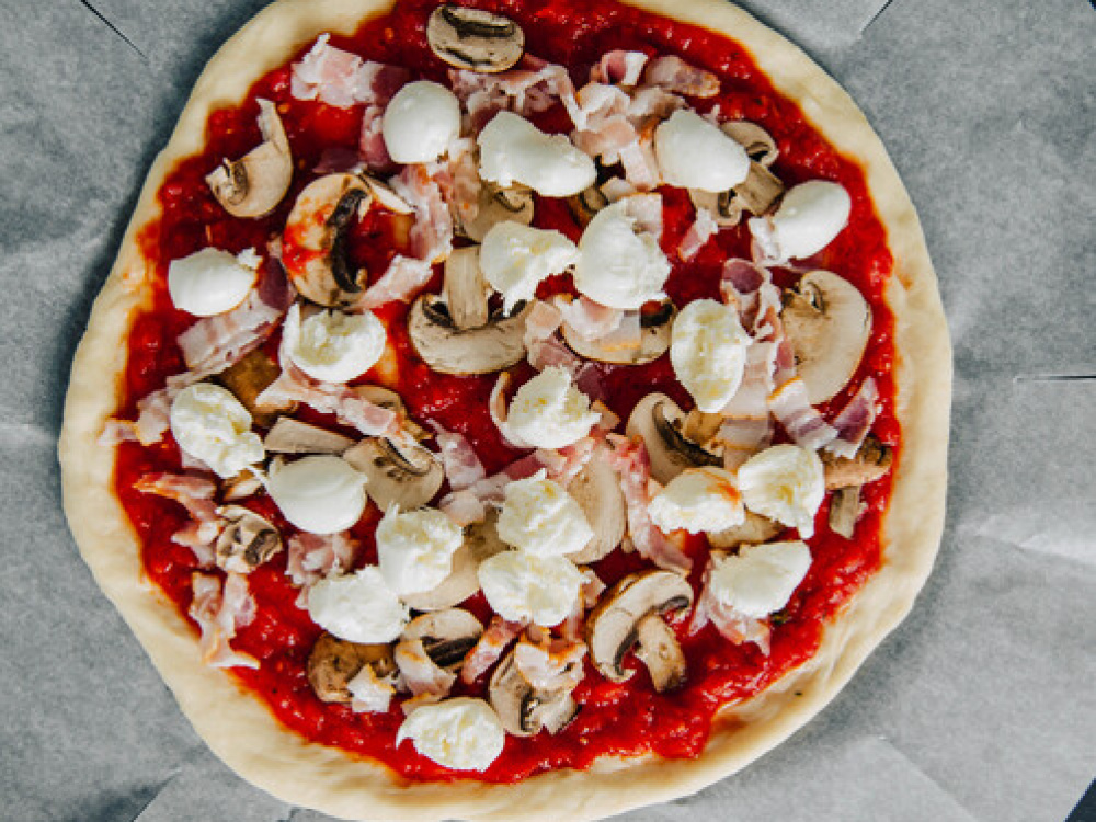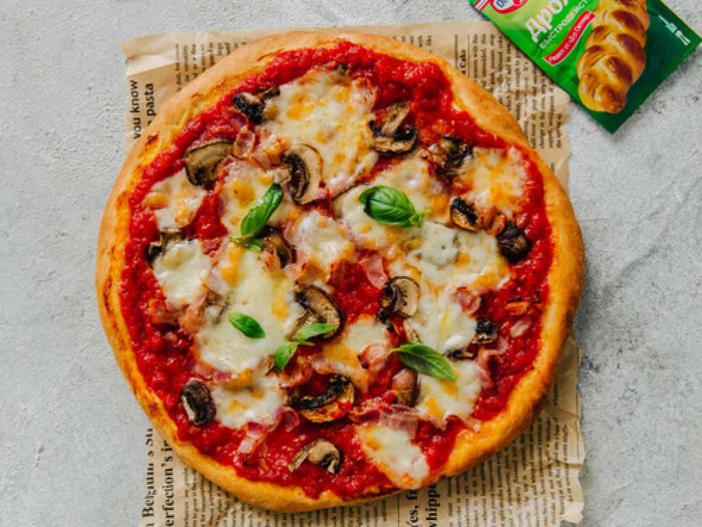 Духовку заранее разогреваем до максимальной температуры. Выпекаем пиццу 5-7 минут.