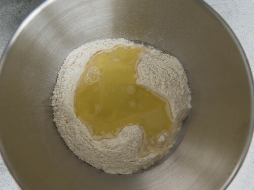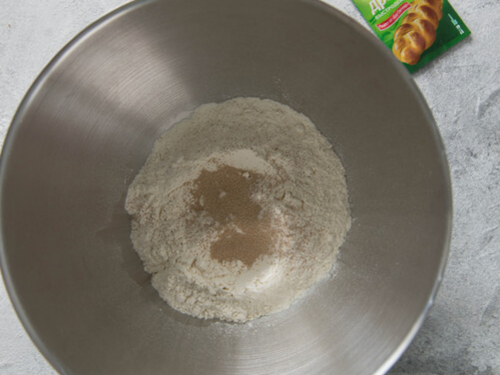 С помощью насадки «крюк» или руками замешиваем тесто. Накрываем полотенцем и ставим на час в теплое место.