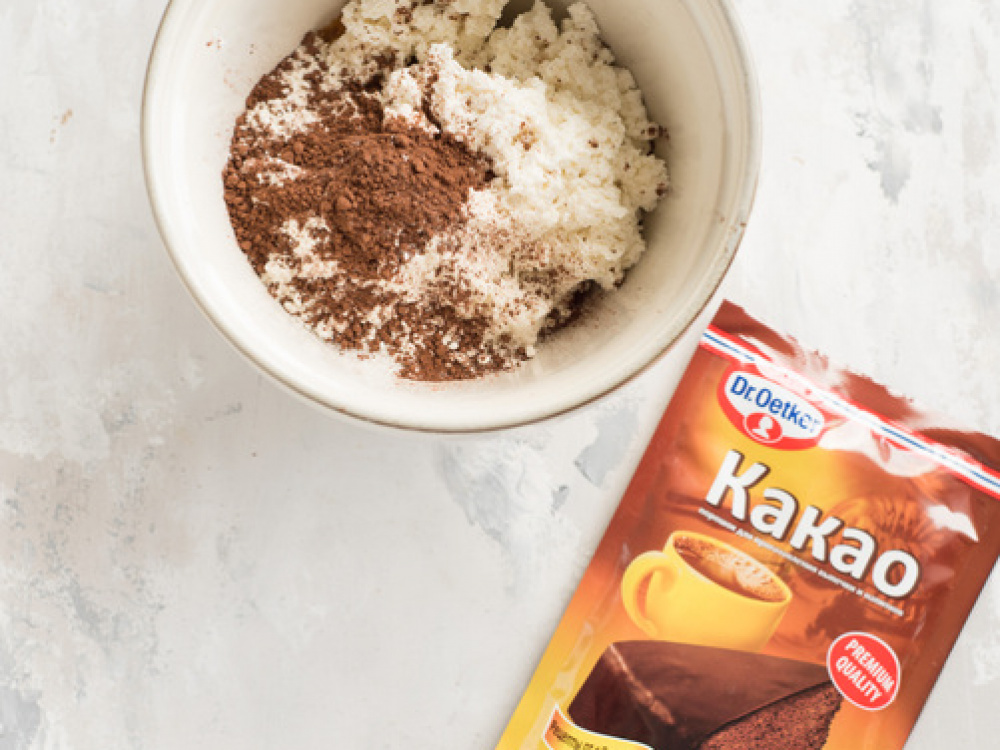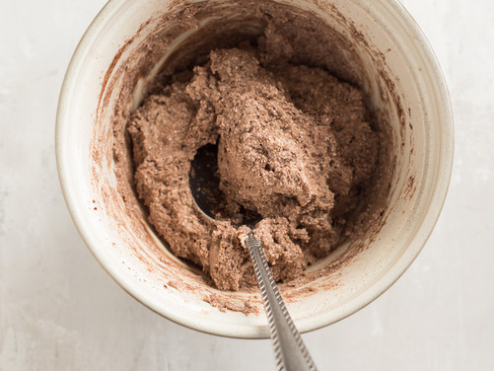 Насыпаем какао и перемешиваем тесто.
