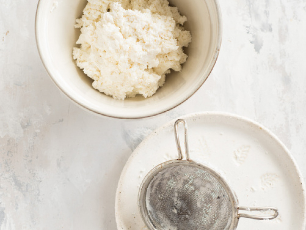 Творог пропускаем через сито для однородной массы.