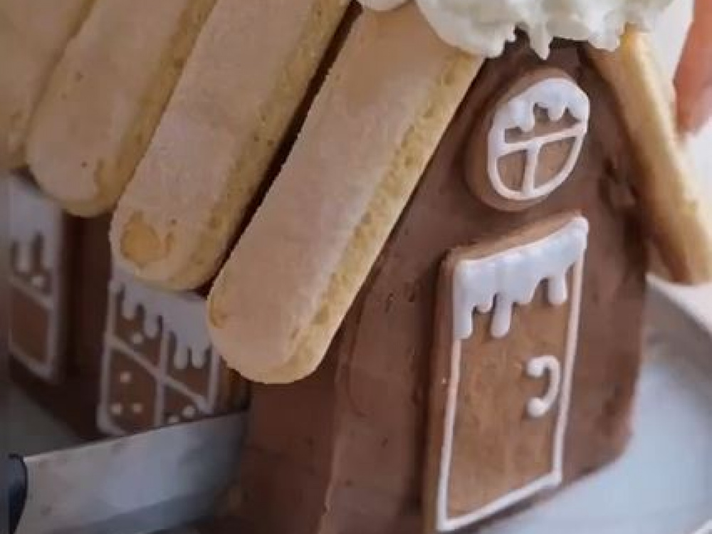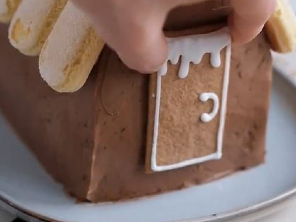 Из печенья савоярди выкладываем крышу.