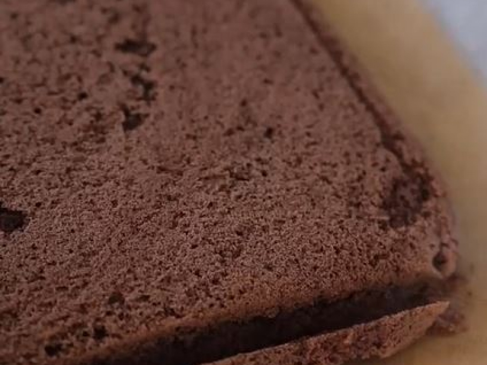 В муку добавляем разрыхлитель, какао, перемешиваем и всыпаем к яично-сахарной массе. Тщательно смешиваем до однородного состояния с помощью лопаточки или на невысокой скорости миксера.