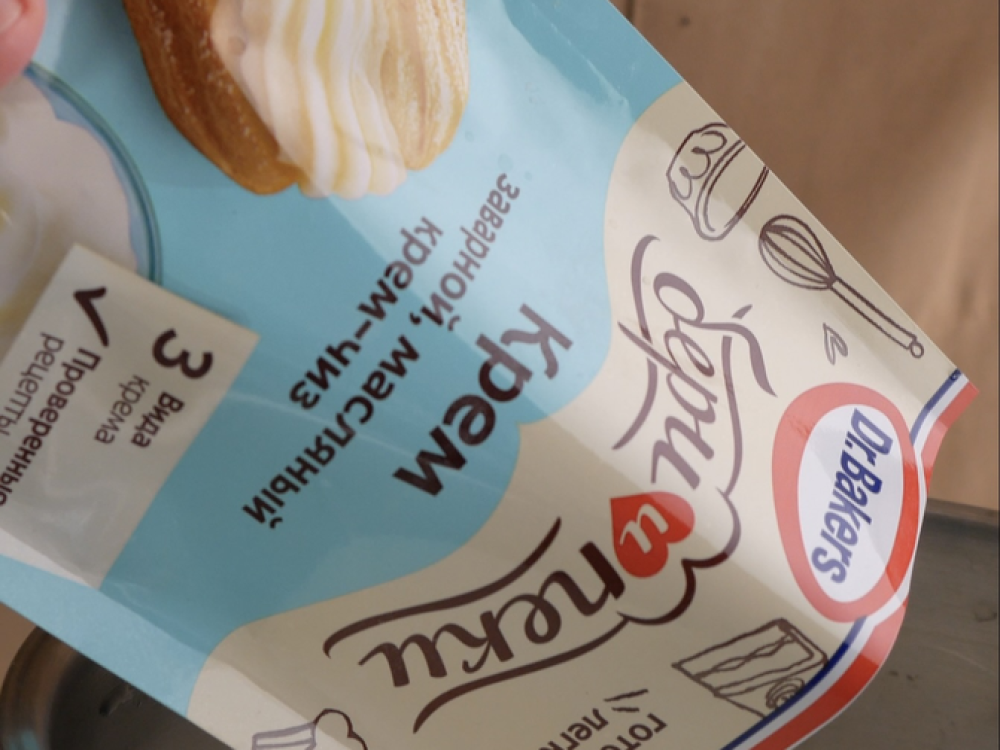 Готовим крем. Холодное молоко (800 мл.) смешиваем со смесью «Бери и пеки. Крем заварной, масляный и крем-чиз» (2 уп.), ставим на средний огонь и увариваем до загущения, постоянно помешивая. Вмешиваем сливочное масло (80 г) и убираем крем в холод до полного остывания.
